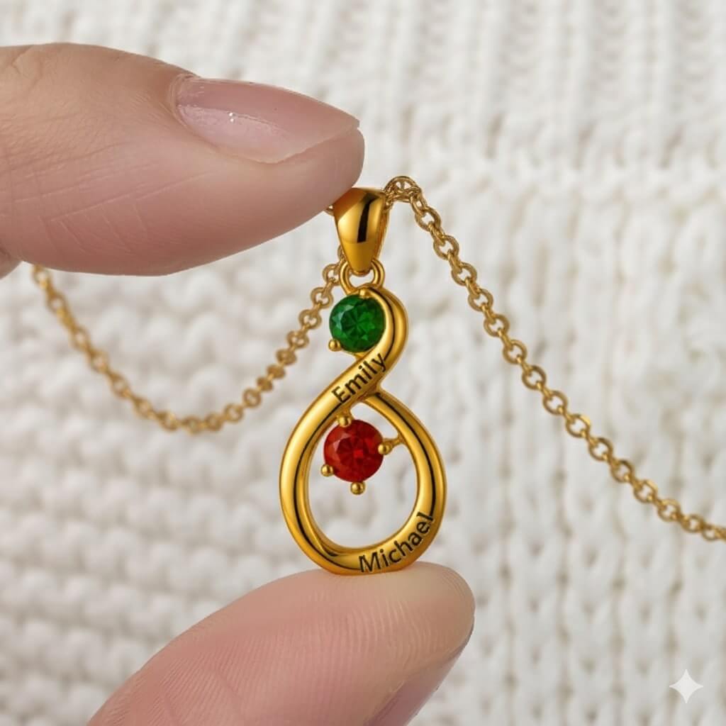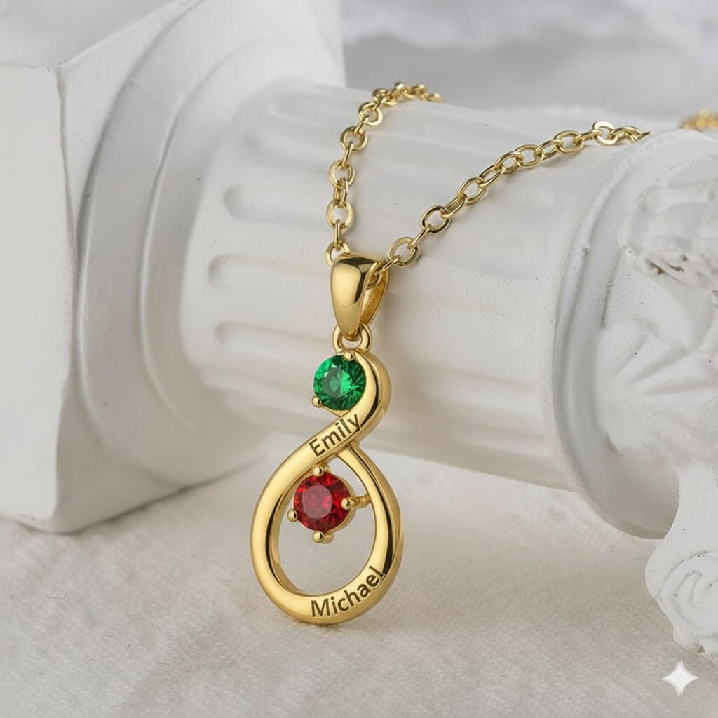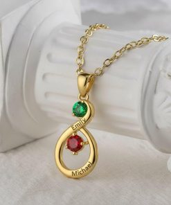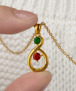 •Design Details: the heart birthstone necklace by Gift is adorned with 2 birthstones, names customized, beautifully embellished with several sparkling clear crystals.